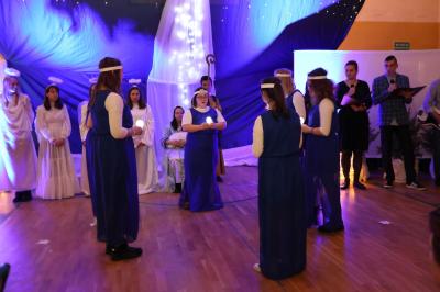 Uroczystość rozpoczęliśmy od wspaniałego występu zespołu NoName i Bonitas, który wprowadził nas w świąteczny nastrój. Uczniowie z branżowej szkoły oraz zespół Enkanto dostarczyli wielu cudownych wrażeń wystawiając przepiękne Jasełka. Swoim zaangażowaniem, talentem i sercem podbili serca widzów.