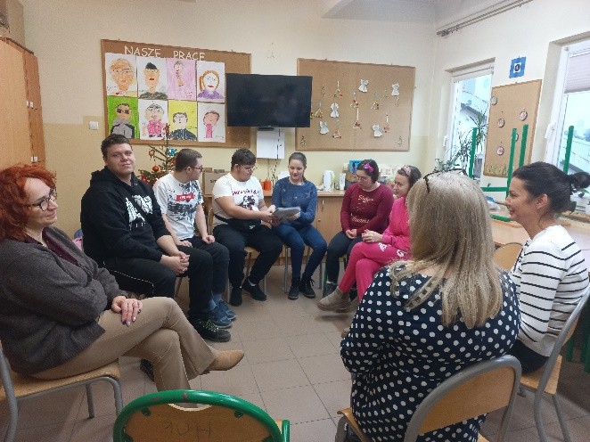 Jednym z działań, które promują i wspierają rozwój czytelnictwa wśród dzieci i młodzieży było zorganizowanie, wspólnie z panią psycholog i logopedą w kl.2 szkoły przysposabiającej do pracy, zajęć omawiających wpływ czytania książek na rozwój młodzieży. Zajęcia opierały się na tekście pochodzącym z książki zakupionej w ramach Narodowego Programu Rozwoju Czytelnictwa 2.0 pt.: „Jesteśmy różni. Bajki, które wzmacniają samoocenę”.