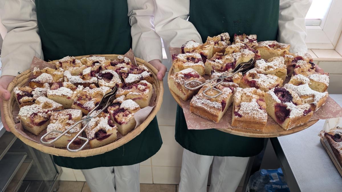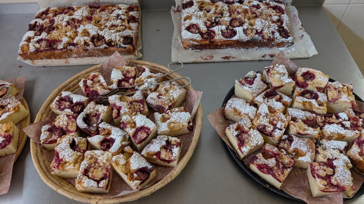 Wszyscy uczniowie degustowali ciasto ucierane ze śliwkami i kruszonką wykonane przez naszych uczniów.