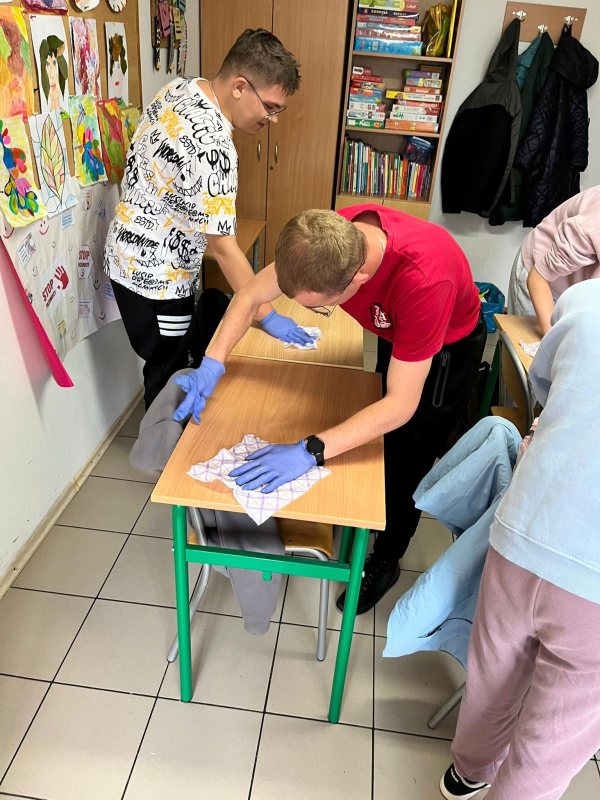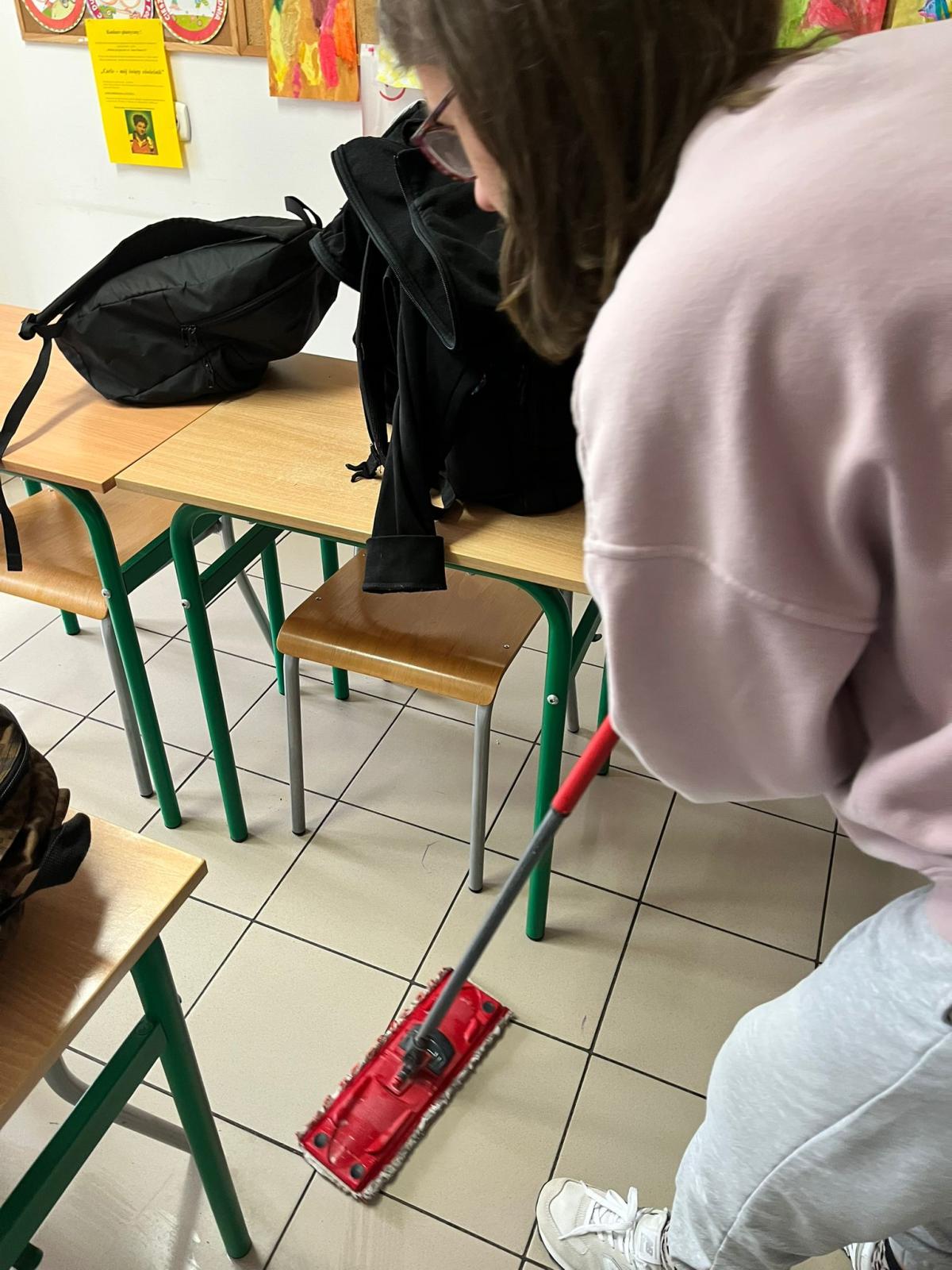 W ramach modułu 9 uczniowie klasy 3Ppb zadbali o porządek w swojej klasie i przypomnieli sobie zasady BHP podczas wykonywania prac biurowych i domowych.