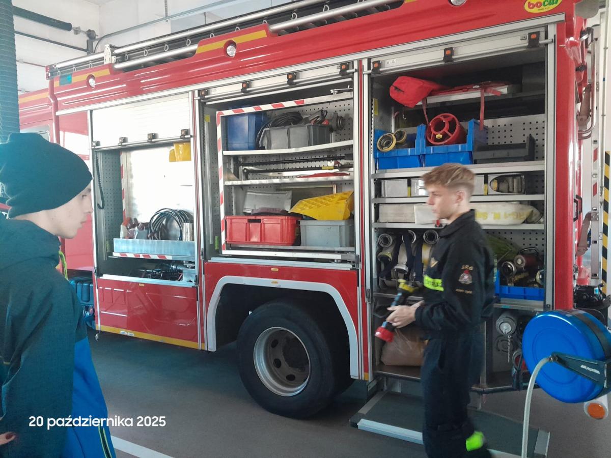 W ramach programu „Bezpieczny dom” nasi uczniowie w dniu 20.10.2025 r. odwiedzili Komendę Miejską Państwowej Straży Pożarnej. Podczas spotkania dowiedzieli się, jak zachować się w sytuacji zagrożenia, jak prawidłowo wezwać pomoc oraz jak wygląda codzienna służba strażaków. 🚒