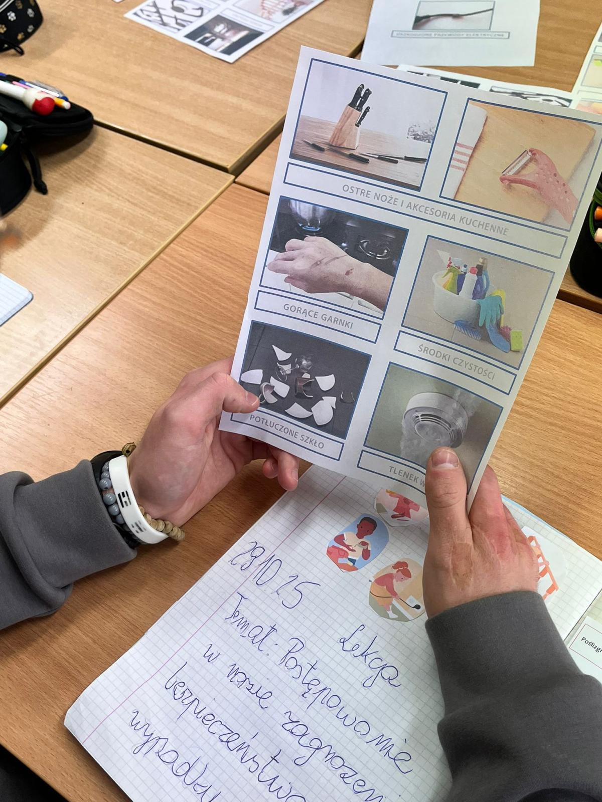 W ramach modułu 3 klasa 3 Ppb na zajęciach przypomniała sobie podstawowe pojęcia związane z bezpieczeństwem pracy w domu. Omawiali również postępowanie w razie zagrożeń wypadkiem w domu i szkole.