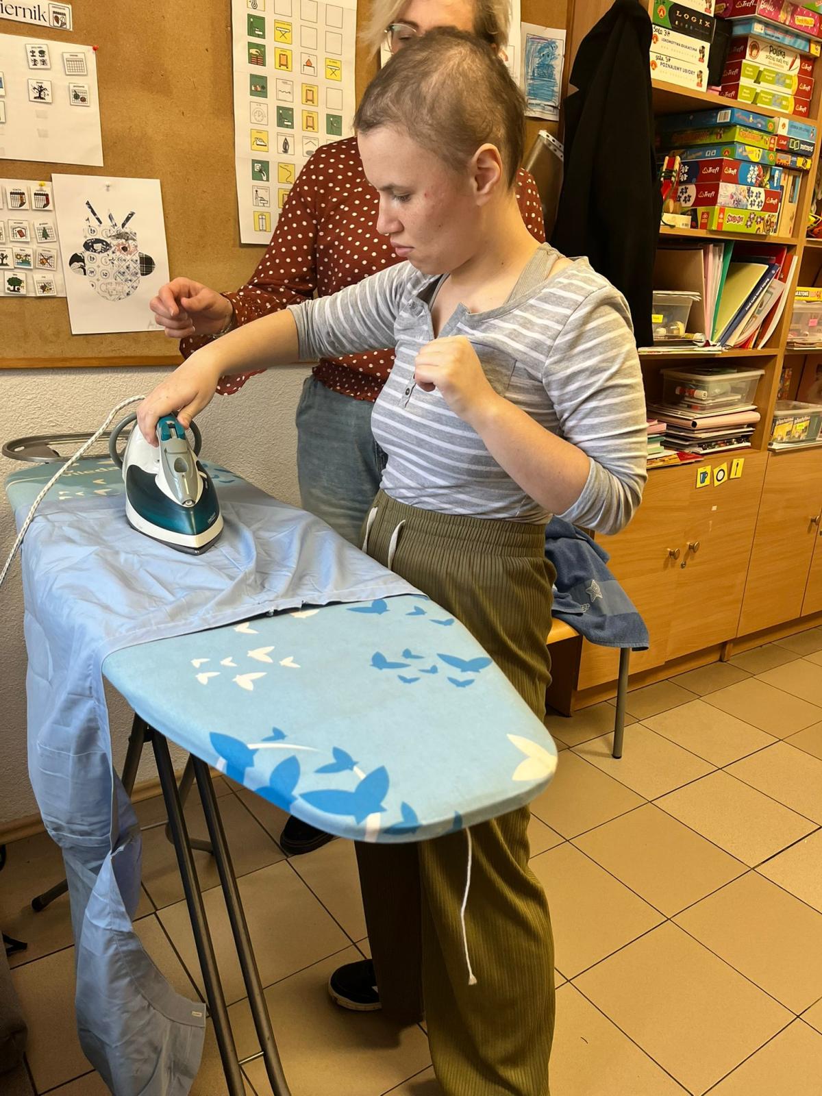 W ramach modułu 9 uczennice z klasy 2Ppa doskonaliły czynności porządkowe - prasowanie, podczas tych zajęć uczyły się prawidłowego korzystania z żelazka.