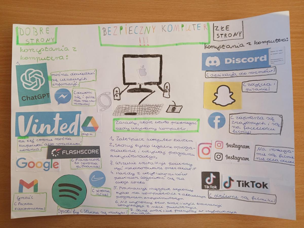 - plakaty w konkursie plastycznym pt. „Bezpieczny komputer - higiena cyfrowa”: