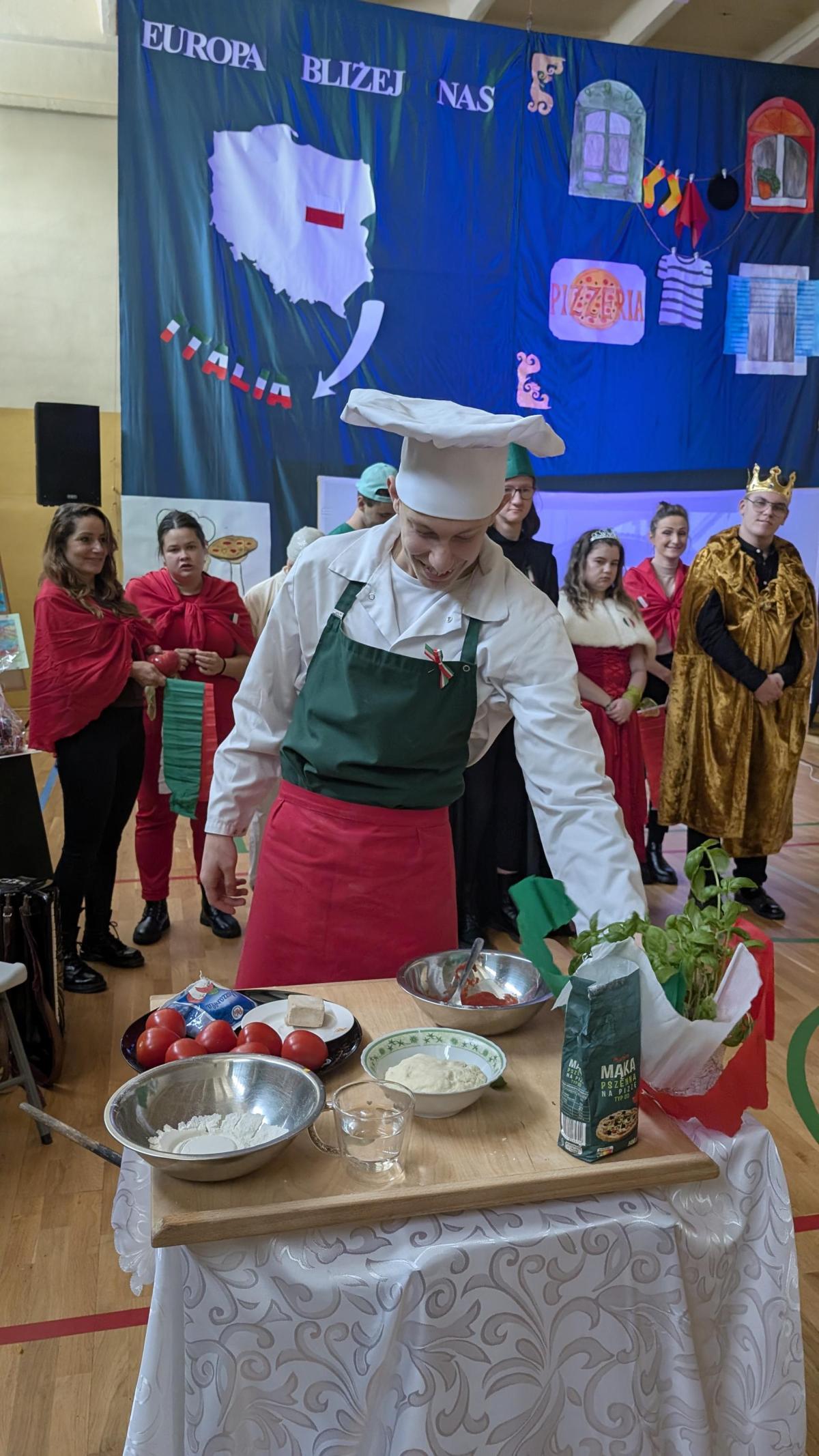 25 listopada 2025 r. sala gimnastyczna naszej szkoły wypełniła się kolorami, muzyką i zapachem włoskiej kuchni. Tego dnia odbyło się uroczyste spotkanie podsumowujące realizację trzeciej części innowacji pedagogicznej „Europa bliżej nas – Włochy”, którego celem było przybliżenie uczniom kultury, tradycji, języka oraz kulinarnego dziedzictwa słonecznej Italii.