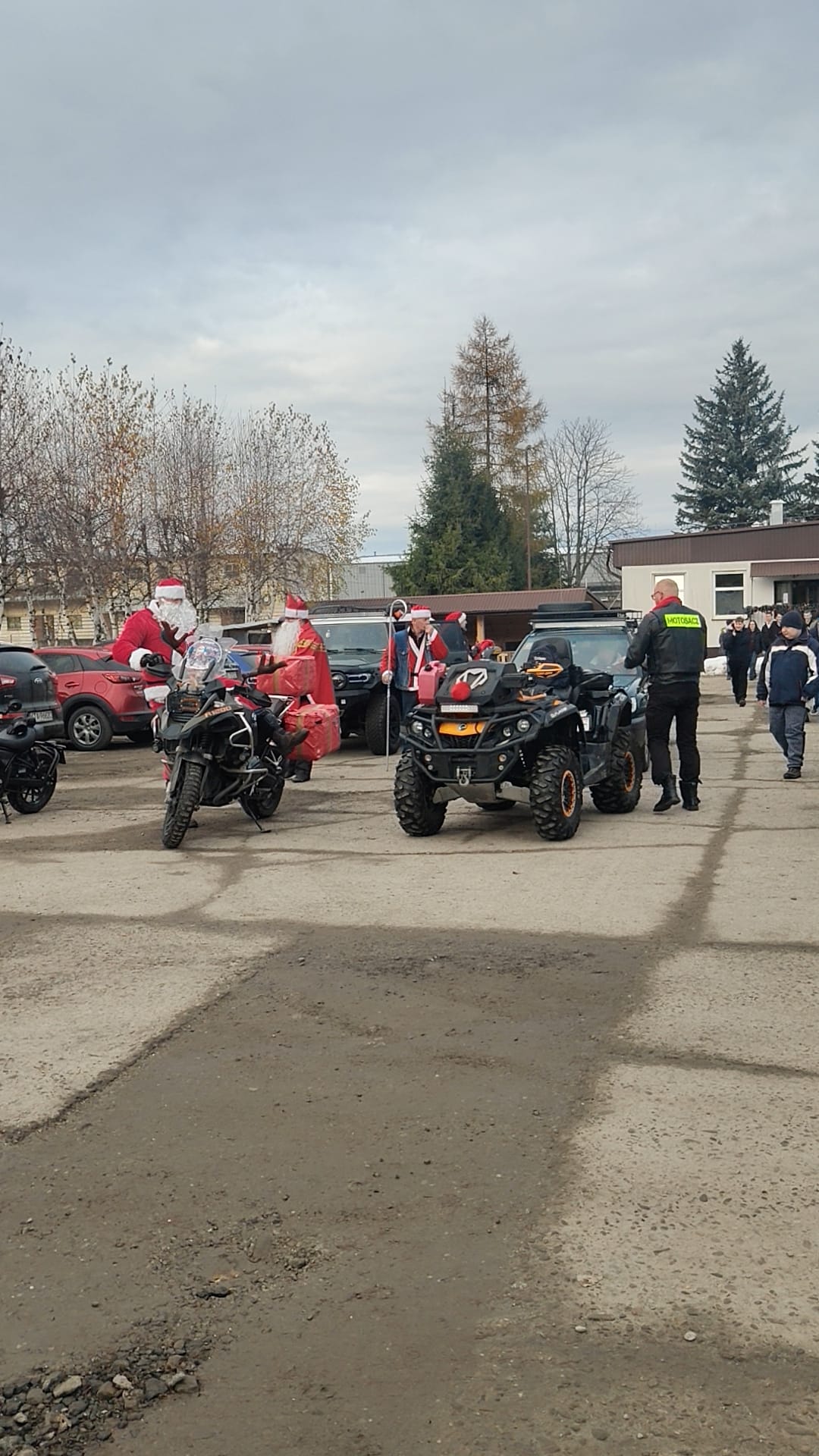 MotoMikołaje przyjechali motocyklami, quadami, samochodami, co od razu przyciągnęło uwagę naszych uczniów. Po uroczystym powitaniu, opowiedzieli o swojej działalności charytatywnej oraz o idei akcji, której celem jest niesienie radości dzieciom i wspieranie potrzebujących w okresie świątecznym.