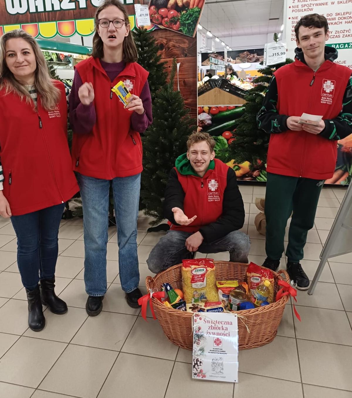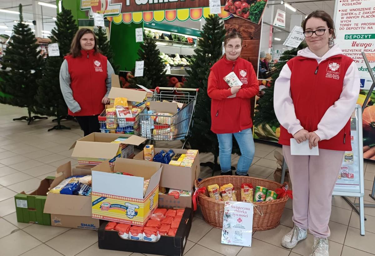 W dniach 11 i 12 grudnia w ramach współpracy szkolnego klubu wolontariatu z Caritas działającym przy parafii MBN w Nowym Sączu zorganizowana została zbiórka żywności dla potrzebujących, którą przeprowadzili wolontariusze pod opieką wyznaczonych nauczycieli. Hojności oraz ciepło z jaką darczyńcy przekazywali produkty spożywcze na zbiórkę były dla wszystkich, zwłaszcza młodzieży naszej szkoły cennym i budującym doświadczeniem spotkania bezinteresownych osób, które z radością niosą pomoc potrzebującym.