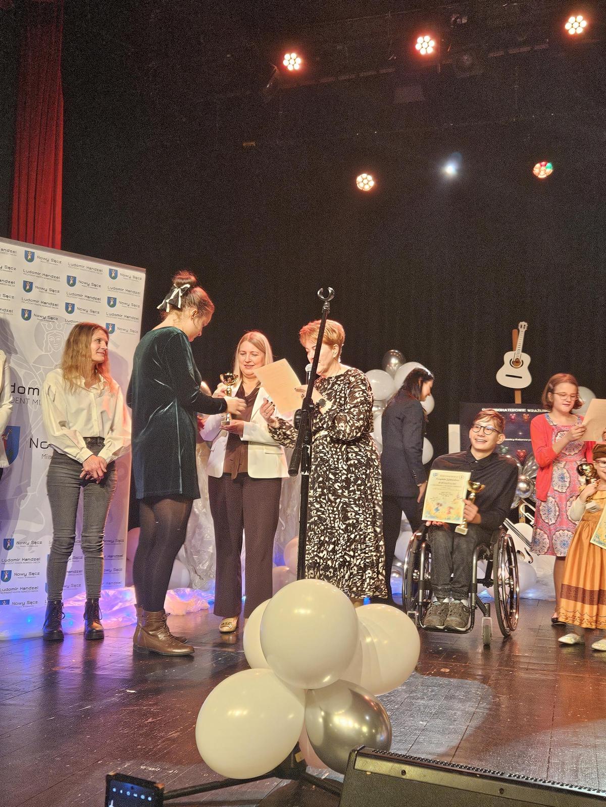 W dniu 11 grudnia 2025 r. uczennice Patrycja i Gabriela wzięły udział w XIX Integracyjnym Festiwalu Piosenki, którego organizatorem była Szkoła Podstawowa nr 6 w Nowym Sączu. Tegorocznemu przeglądowi talentów towarzyszyło hasło: „Wyśpiewaj emocje”. Uczennice zostały nagrodzone, a ich występy charakteryzowały się wysokim poziomem artystycznym oraz dużym zaangażowaniem scenicznym, dzięki czemu w sposób wyjątkowy i poruszający zaprezentowały widzom emocje zawarte w wykonywanych utworach. Wydarzenie odbyło się w wyjątkowej atmosferze, towarzyszącej obchodom Europejskiego Tygodnia Autyzmu. Stanowiło okazję do spotkania, współpracy oraz wspólnego przeżywania pięknych i poruszających chwil. Jednym z ważnych punktów programu było uroczyste odczytanie fragmentów książki „Superbohaterowie Wrażliwości – Strażnicy Kolorowych Serc”, która w symboliczny sposób podkreślała wartość empatii, wrażliwości i różnorodności. Naszą szkołę reprezentowała również Dyrektor Jolanta Dudczyk, będąca w gronie osób, które na co dzień z zaangażowaniem i troską towarzyszą dzieciom oraz młodym ludziom w ich wyjątkowej drodze rozwoju i odkrywania własnego potencjału. Był to dzień pełen wzruszeń, radości i wspaniałych przeżyć. Udział w Festiwalu był dla nas ogromnym zaszczytem i pozostanie na długo w naszej pamięci.