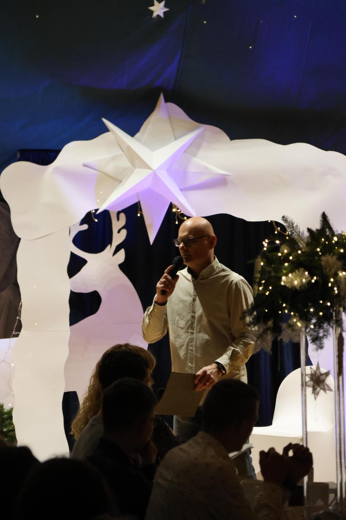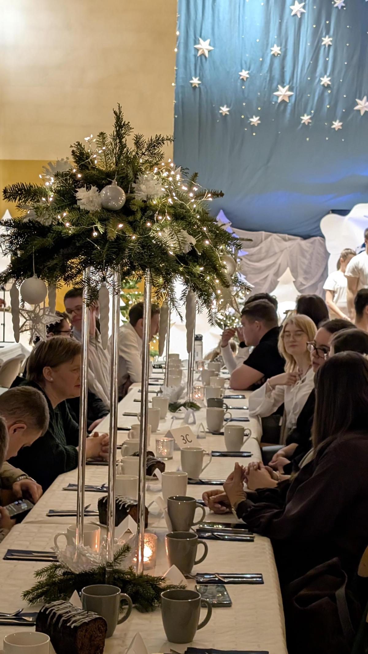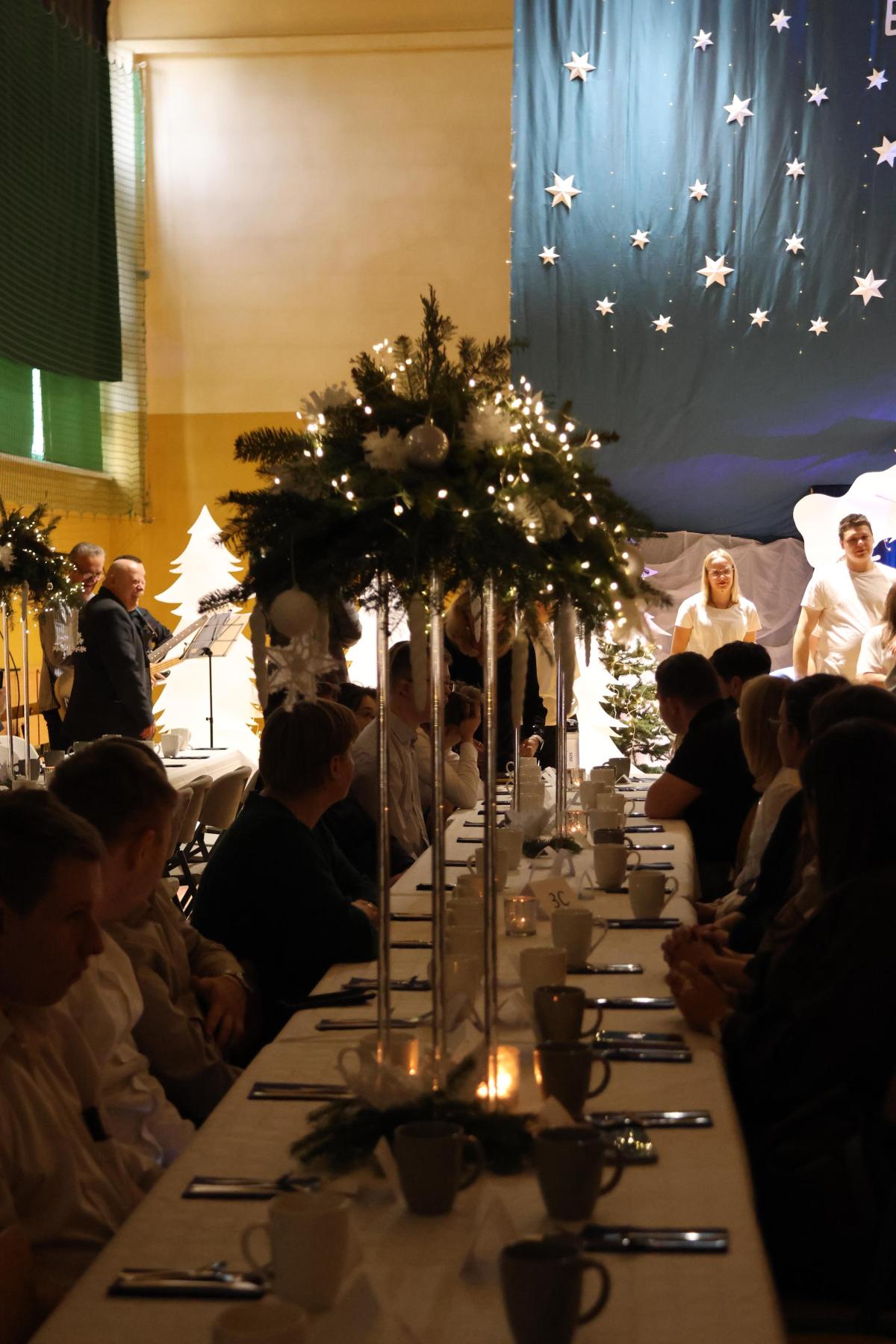 Kolejnym punktem programu była wspólna wieczerza wigilijna, poprzedzona życzeniami złożonymi przez przybyłych gości. Za każde piękne słowo bardzo dziękujemy.