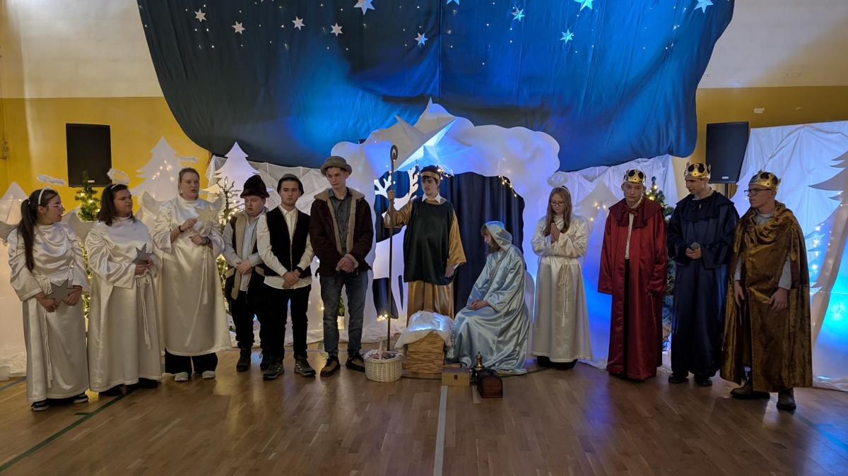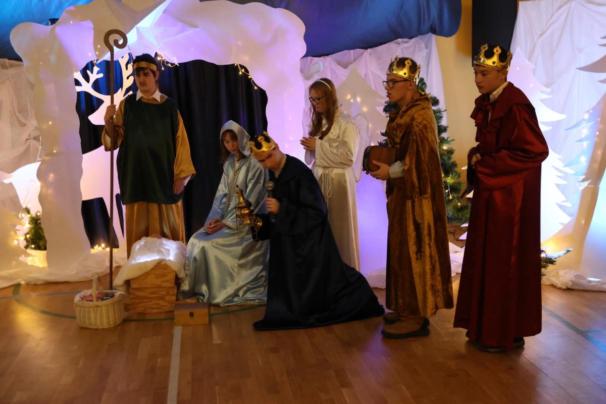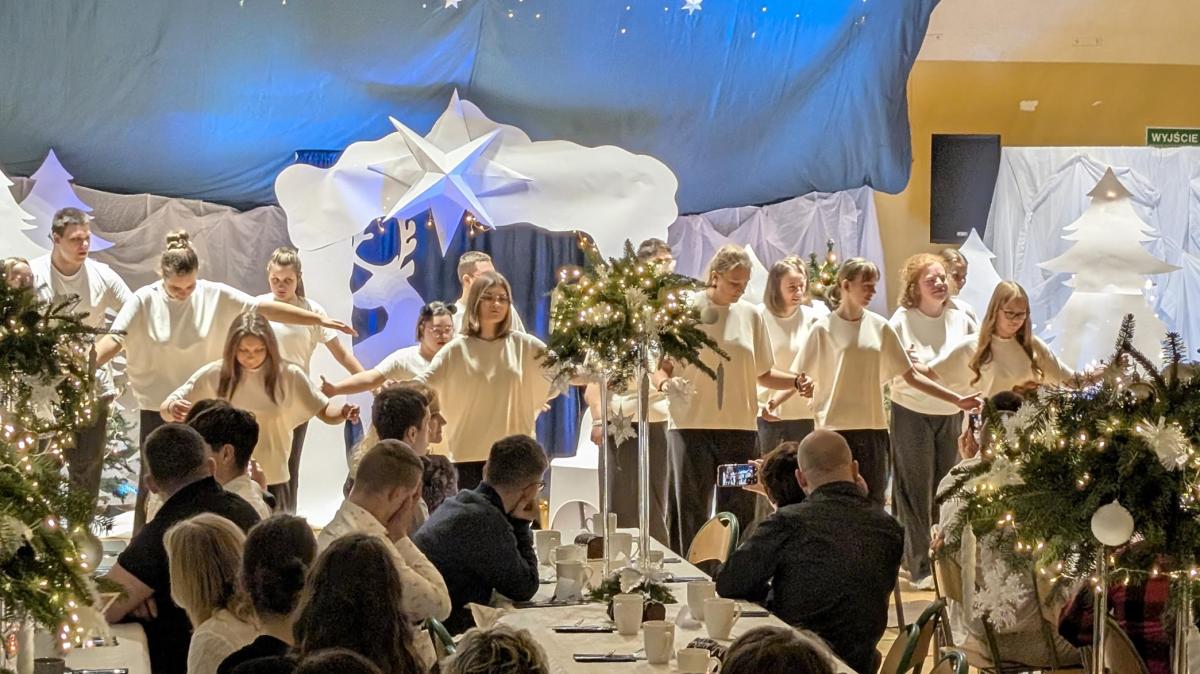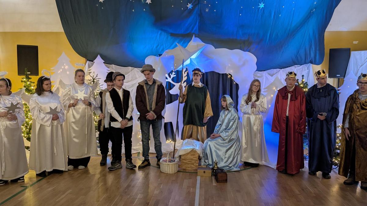 10 grudnia 2025 roku w Zespole Szkół odbyło się wyjątkowe spotkanie jasełkowe. Uroczystość rozpoczął znakomity występ zespołu NoName, przygotowany pod kierunkiem p. J. Szczepanika, który wprowadził zgromadzonych gości w magiczny, świąteczny nastrój. Następnie uczniowie branżowej szkoły oraz zespoły Encanto i Bonitas zaprezentowali przepiękne Jasełka, które dostarczyły wszystkim wielu wzruszeń i niezapomnianych wrażeń. Ich zaangażowanie, talent oraz ogromne serce zostały nagrodzone gorącymi brawami i uznaniem widzów.