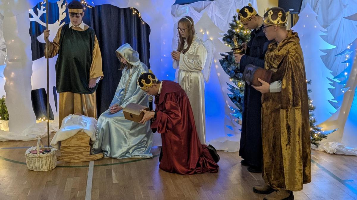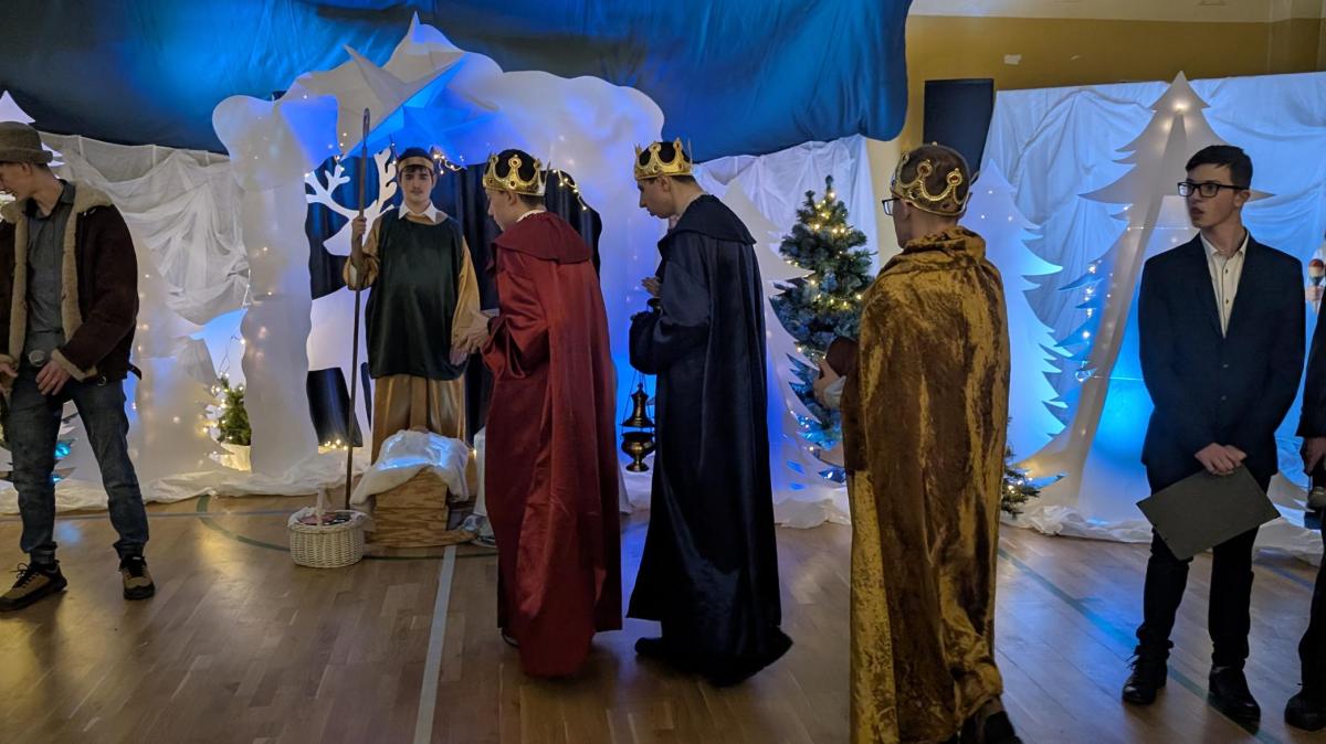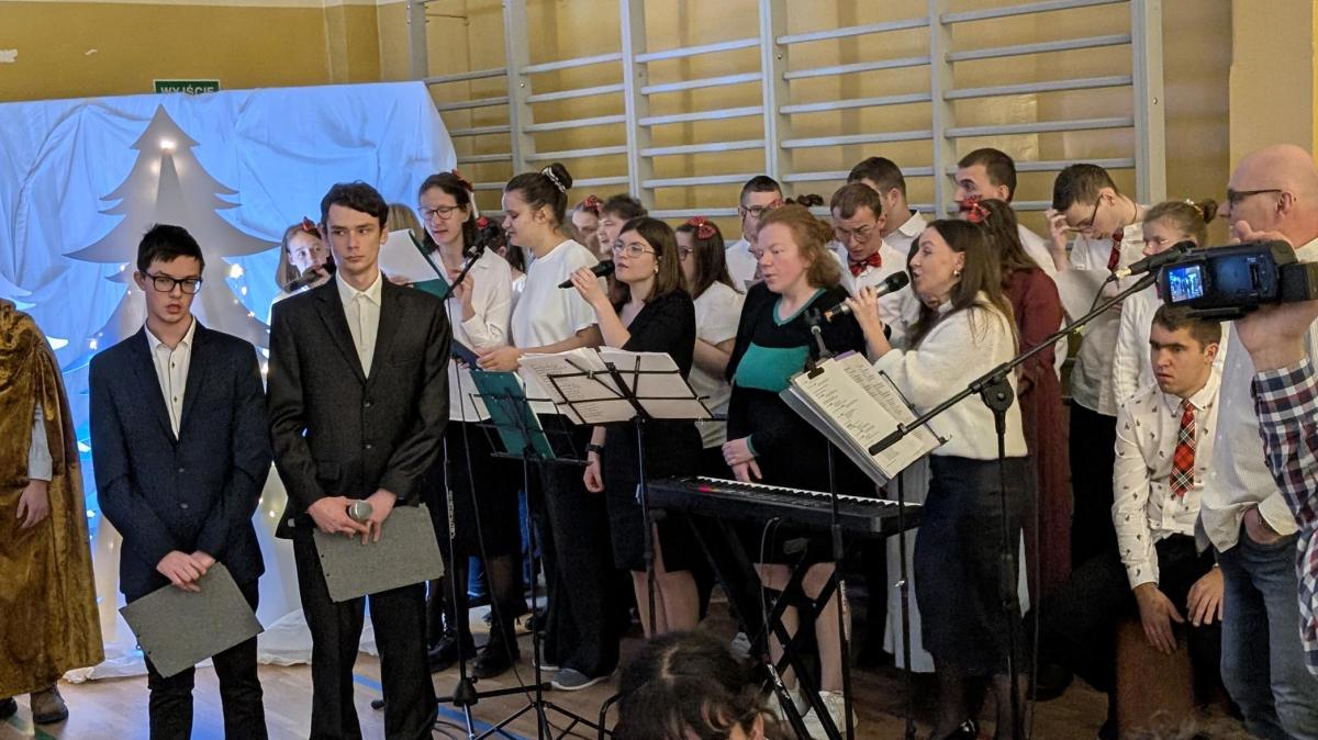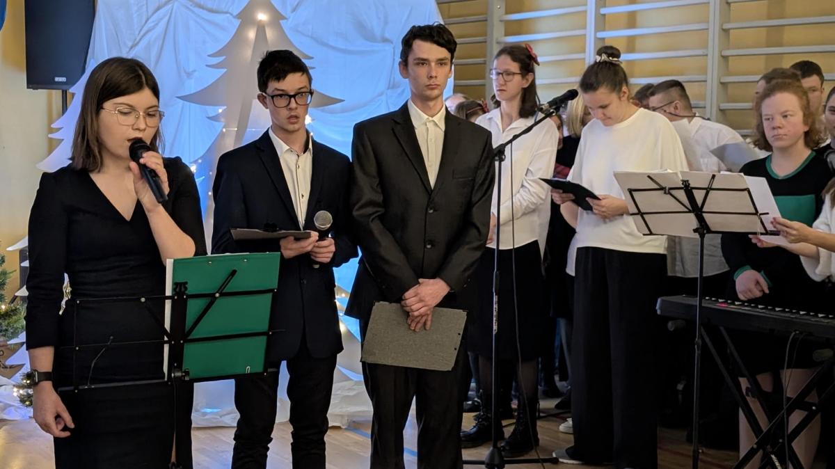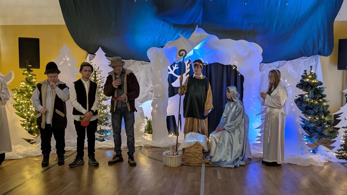10 grudnia 2025 roku w Zespole Szkół odbyło się wyjątkowe spotkanie jasełkowe. Uroczystość rozpoczął znakomity występ zespołu NoName, przygotowany pod kierunkiem p. J. Szczepanika, który wprowadził zgromadzonych gości w magiczny, świąteczny nastrój. Następnie uczniowie branżowej szkoły oraz zespoły Encanto i Bonitas zaprezentowali przepiękne Jasełka, które dostarczyły wszystkim wielu wzruszeń i niezapomnianych wrażeń. Ich zaangażowanie, talent oraz ogromne serce zostały nagrodzone gorącymi brawami i uznaniem widzów.