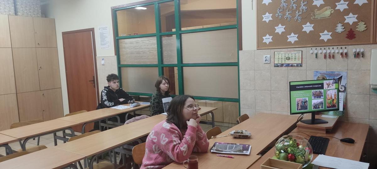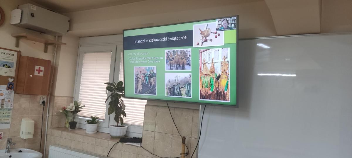W ostatnim tygodniu przed świętami odbyła się bożonarodzeniowa lekcja z projektu „Irlandia w szkole”. Pani Justyna Mazurek- Schramm podczas spotkania na platformie Zoom, zapoznała nas ze zwyczajami bożonarodzeniowymi panującymi w Irlandii. Poniżej fotorelacja z lekcji.