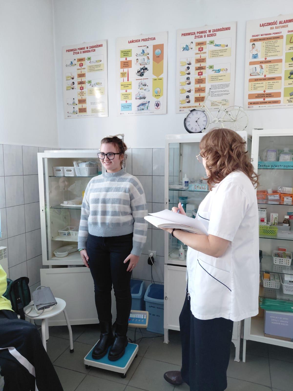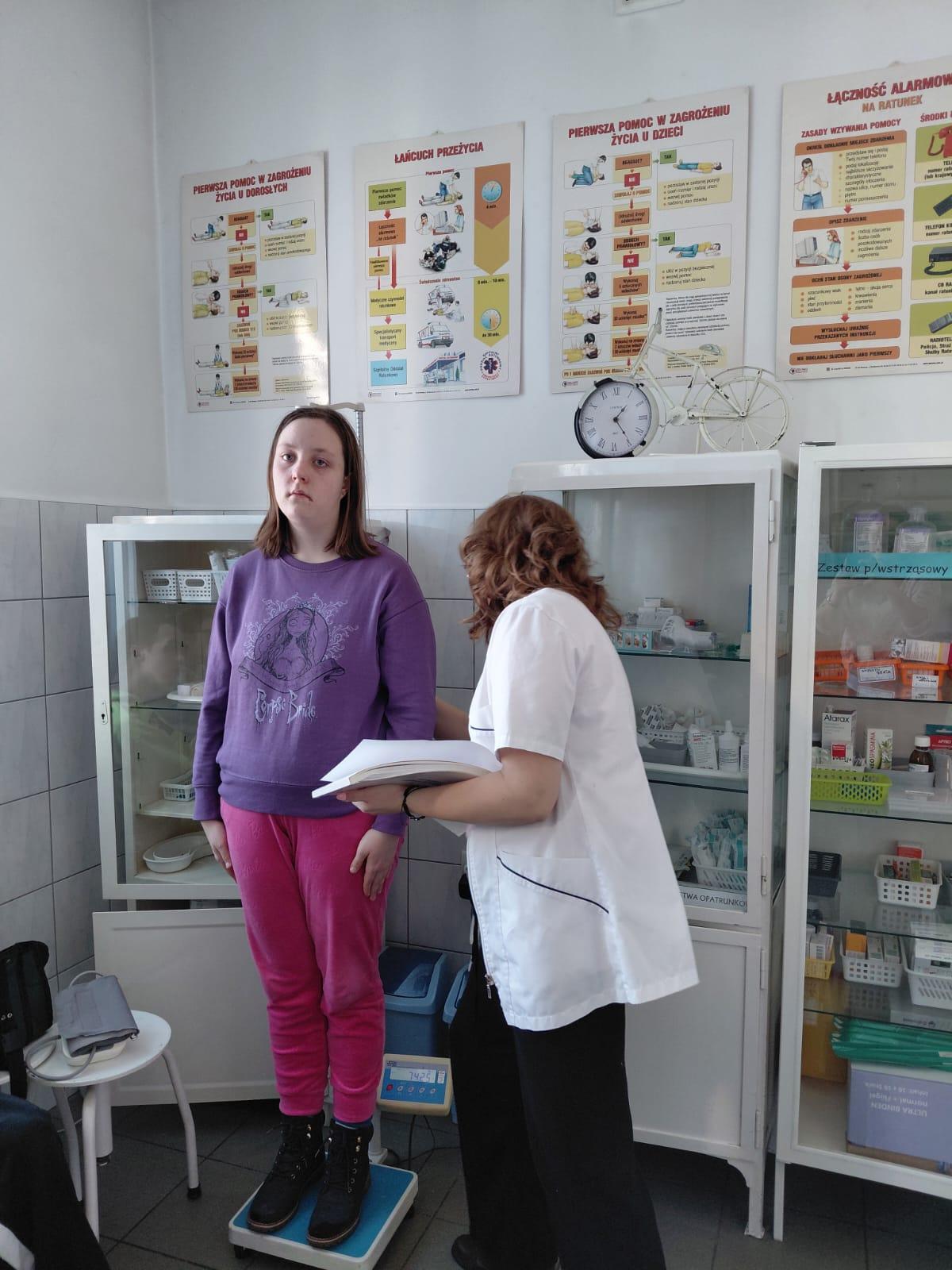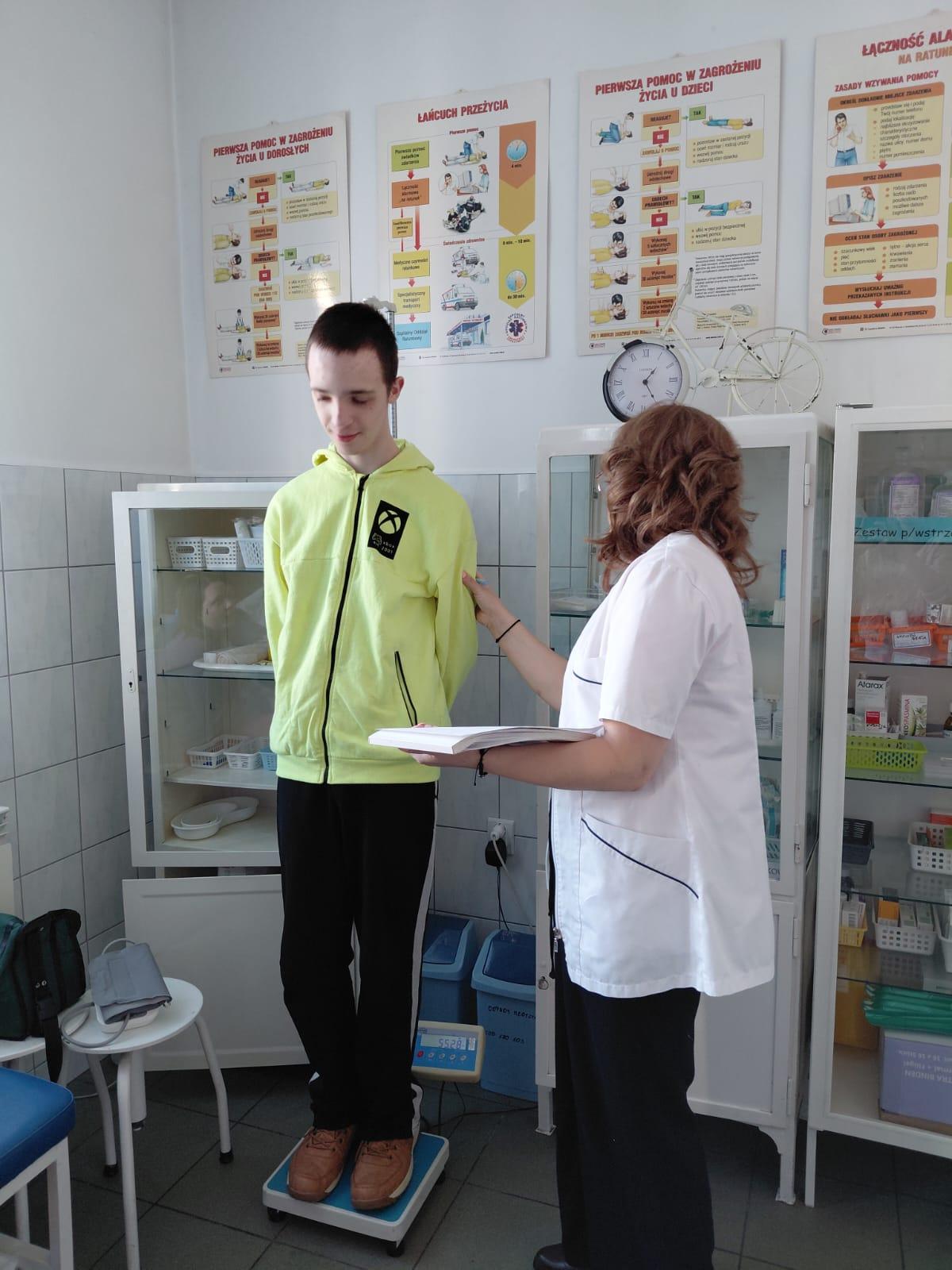 Ogólnopolski projekt edukacyjny "Chcę być samodzielny-pozwól mi". W ramach modułu 5 i 6 klasy 1PpA, 1PBn i 1PpD na zajęciach z funkcjonowania osobistego i społecznego zapoznały się z zawodem lekarza i pielęgniarki. Na zajęciach rozmawialiśmy o tym jak wygląda wizyta u lekarza oraz czego do swojej pracy potrzebują lekarze i pielęgniarki. Uczniowie odwiedzili również gabinet pani pielęgniarki szkolnej, która pokazała im co się w nim znajduje oraz opowiedziała jak wygląda jej codzienna praca. Zostali zważeni i zmierzeni, a pani pielęgniarka zaprezentowała w jaki sposób posługiwać się ciśnieniomierzem i stetoskopem. Były to bardzo przyjemne i pożyteczne dla uczniów zajęcia.