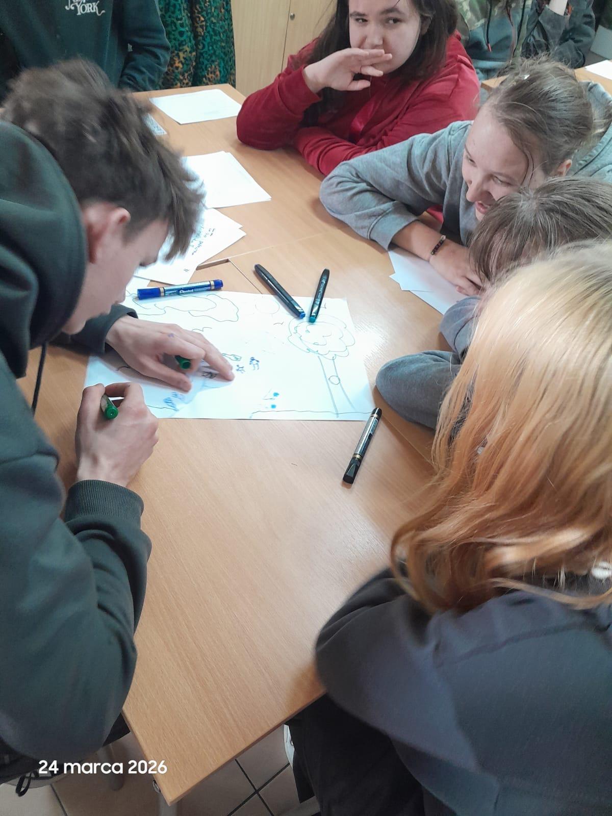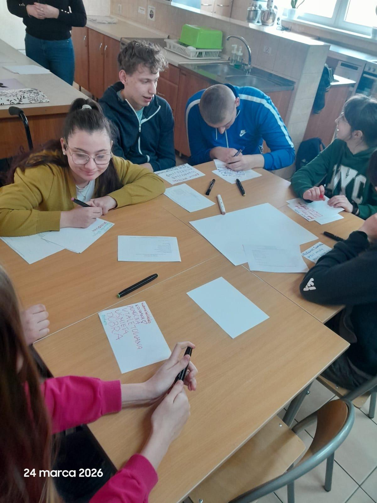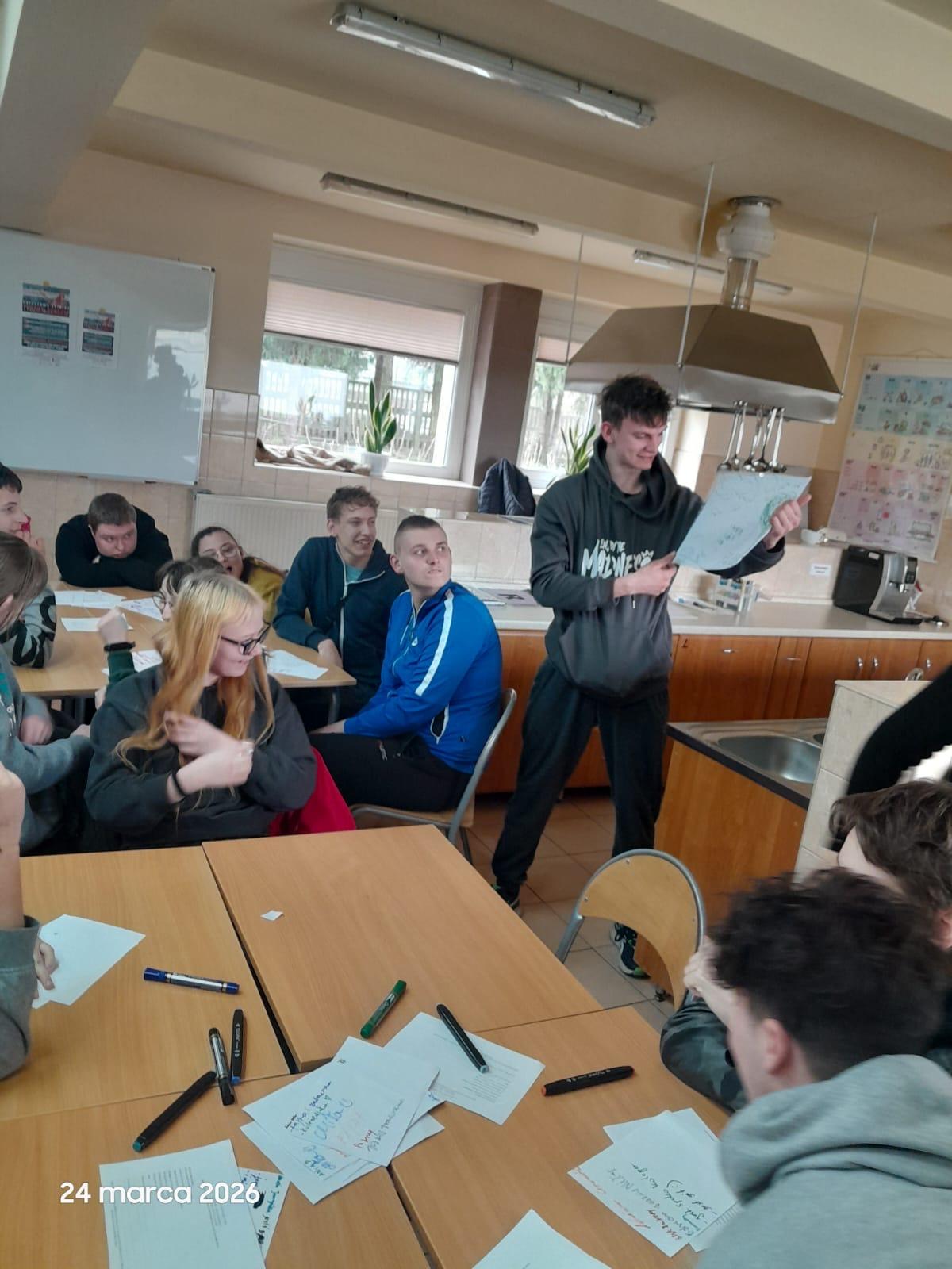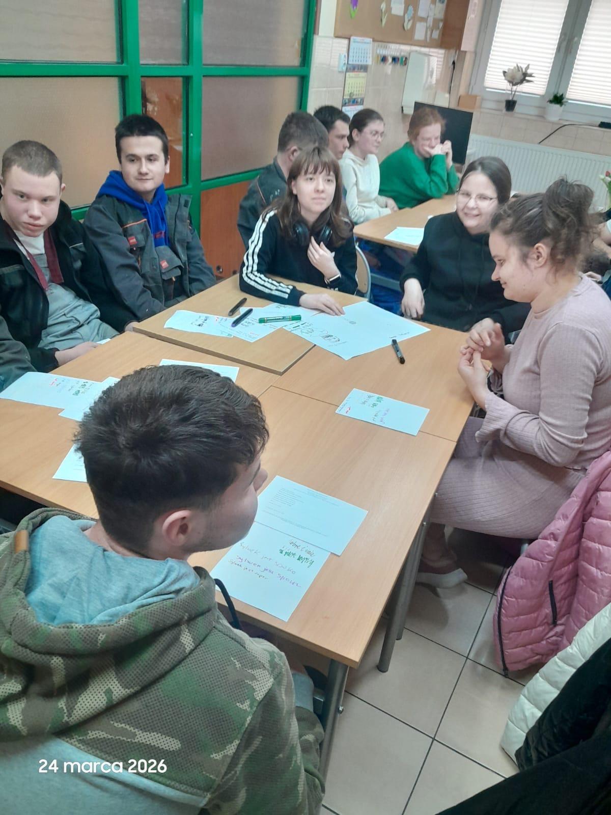 W dniach 24 i 25 marca 2026 r. szkolni pedagodzy oraz psycholog przeprowadzili warsztaty dla uczniów Branżowej Szkoły nr 4 oraz Szkoły Specjalnej Przysposabiającej do Pracy. Podczas zajęć uczniowie mieli okazję zatrzymać się na chwilę i zastanowić nad pytaniami o sens, cel oraz znaczenie relacji w codziennym życiu.