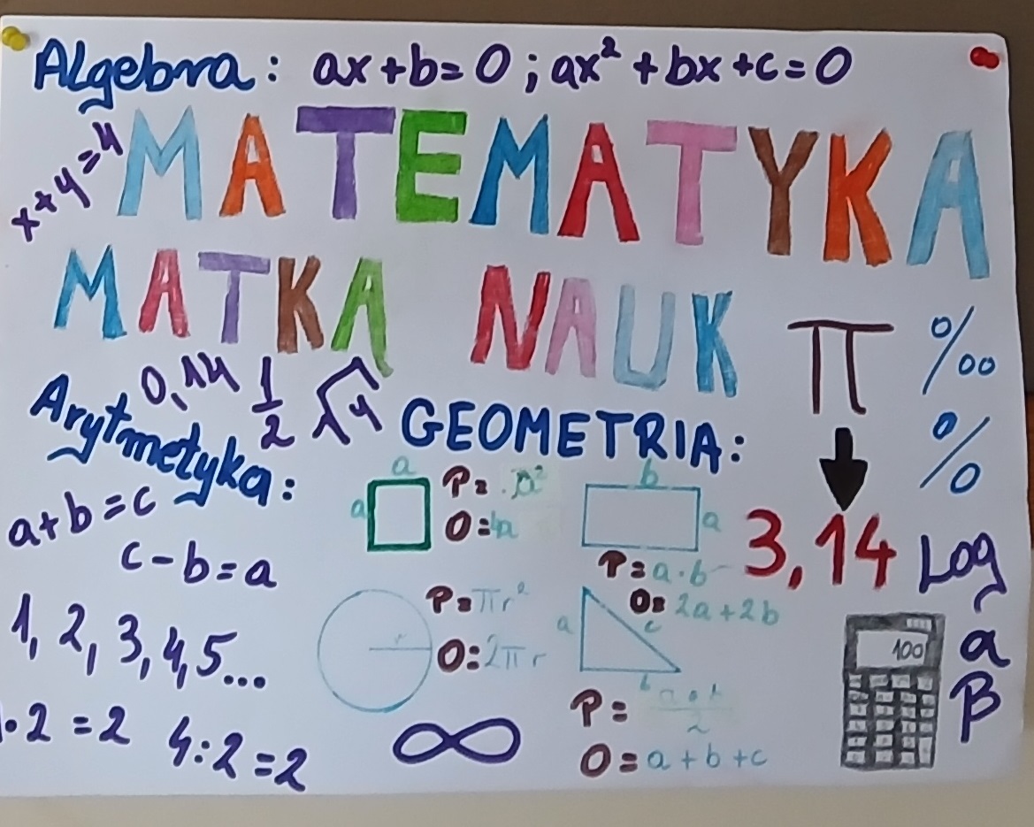 12 marca przypada Ogólnopolski Dzień Matematyki, a 14 marca - Międzynarodowy Dzień Matematyki, w tym Dzień Liczby Pi. W związku z tym w naszej szkole w dniach 9-13 marca 2026 roku odbył się konkurs informatyczny w aplikacji kahoot.it pt. „Matematyka jest wszędzie” dla uczniów Branżowej Szkoły I Stopnia nr 4 – Specjalnej. Zadania dotyczyły zagadnień nauk przyrodniczych i miały na celu doskonalenie umiejętności matematycznych. Natomiast w dniach 9-20 marca 2026 roku odbył konkurs plastyczny pt. „Matematyka - lubię to!” skierowany do wszystkich uczniów.