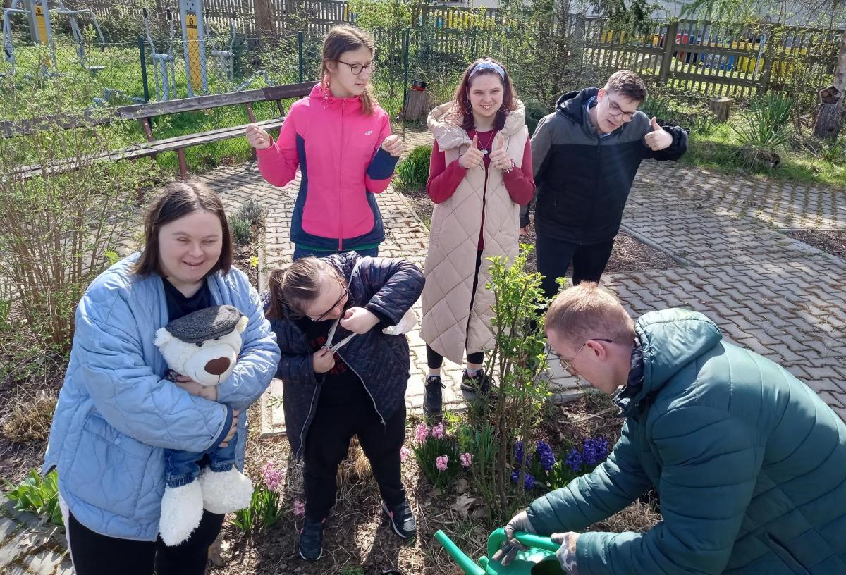 Wychowankowie pod opieką nauczycieli Violetty U. oraz Agnieszki Z. oraz w towarzystwie „MIECIA” zasadzili rośliny miododajne i wykonywali prace porządkowe w szkolnym ogrodzie, spędzali czas na szkolnej siłowni pod chmurką oraz aktywnie relaksowali się na świeżym powietrzu obserwując budzącą się do życia przyrodę. Uczniowie Szkoły Przysposabiającej do Pracy wzięli udział w konkursie pt. „ W zgodzie z naturą”. Uczestnicy zostali nagrodzeni, a ich kreatywność, twórczość oraz zaangażowanie w wykonanie prac plastycznych możemy podziwiać na szkolnej gazetce.