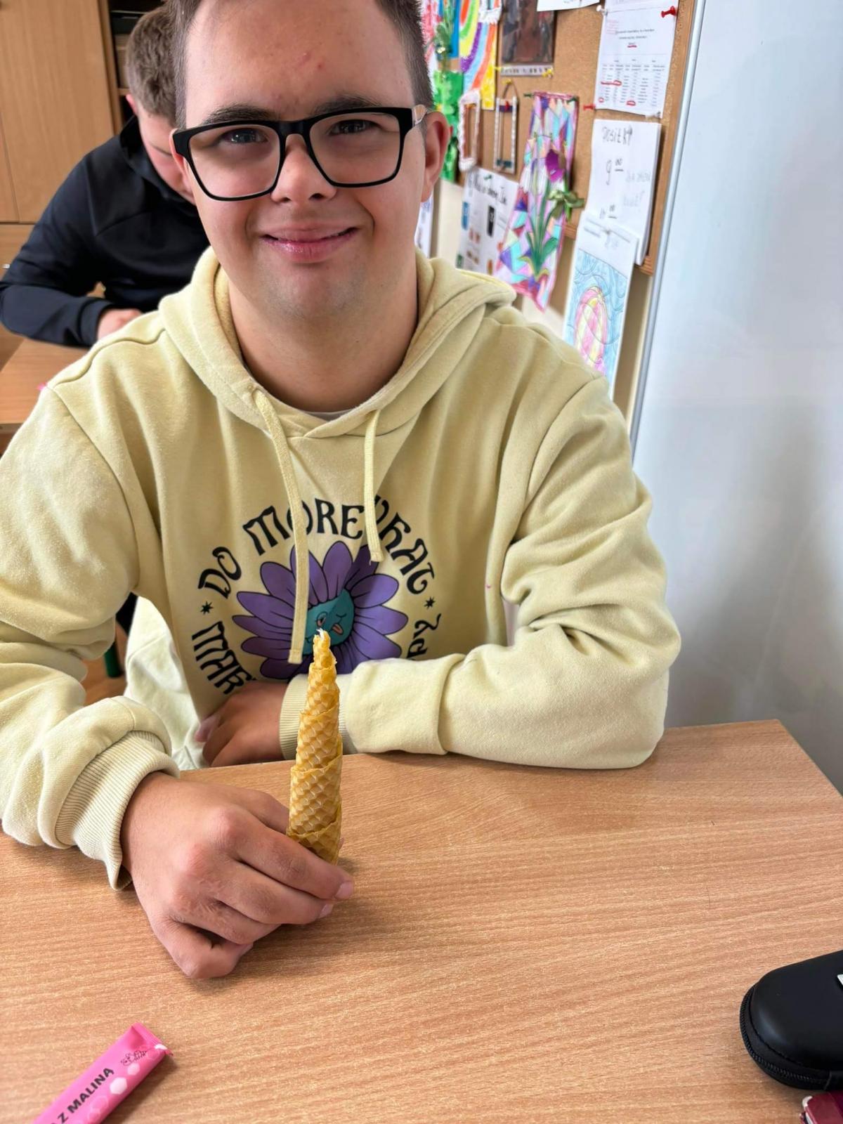 Klasa 2Ppd wraz z wychowawcą wykonała świece z wosku pszczelarskiego pełne aromatu, zapoznała się bliżej z wytwarzaniem wosku a także miodu przez pszczoły. Warsztaty były dla wszystkich cenne i atrakcyjne.